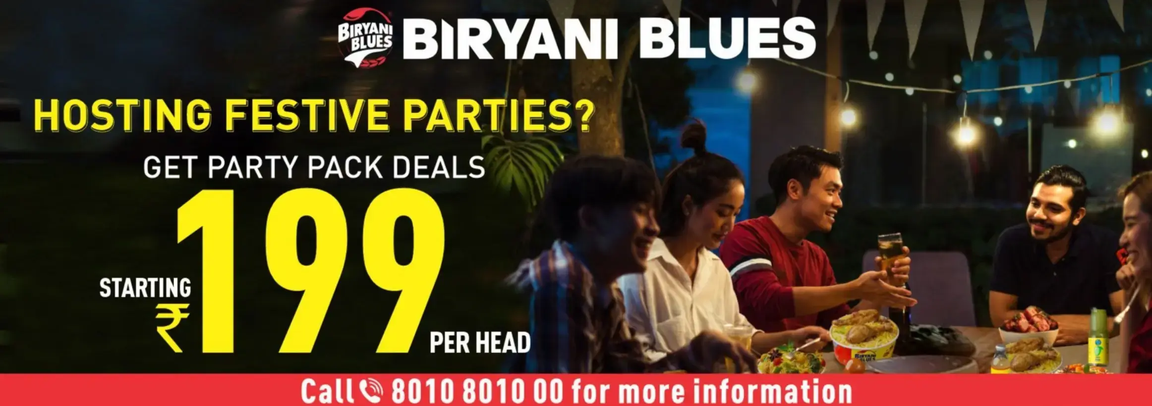 Outdoor Catering, dining or delivery?! Biryani Blues will cater to everyone’s need with #MeriWaliBiryani. With focus on authentic taste, quality, hygiene and convenience Biryani Blues guarantees trip to Hyderabad and back just over a leisurely meal at a value for money price!